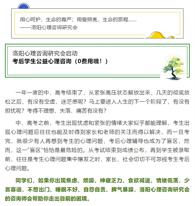 公益心理咨詢月:中、高考后學生心理咨詢